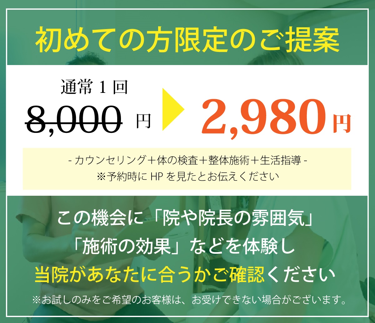 そうした自律神経を乱す要因1つ1つを確実に解消する整体を行い、徐々に眠れるようなっていただくのが当院の施術方針です。